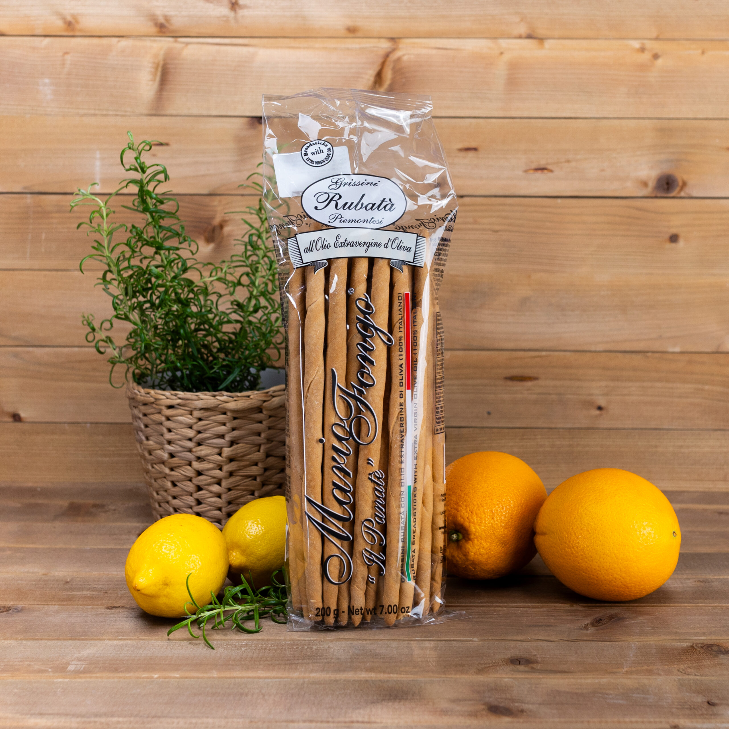 Opis: Rubatà to najstarszy kształt grissini czyli włoskich paluszków chlebowych. Po raz pierwszy wypiekany prawdopodobnie w 1679 roku w Turynie przez mistrza Antonia Brunero na zlecenie lekarza królewskiego Teobaldo Pecchio na dworze sabaudzkim dla przyszłego króla Vittorio Amadeo II. Wersja all’olio wzbogacona jest oliwą z oliwek, która nadaje nadaje pieczywu delikatność i typową śródziemnomorską nutę.